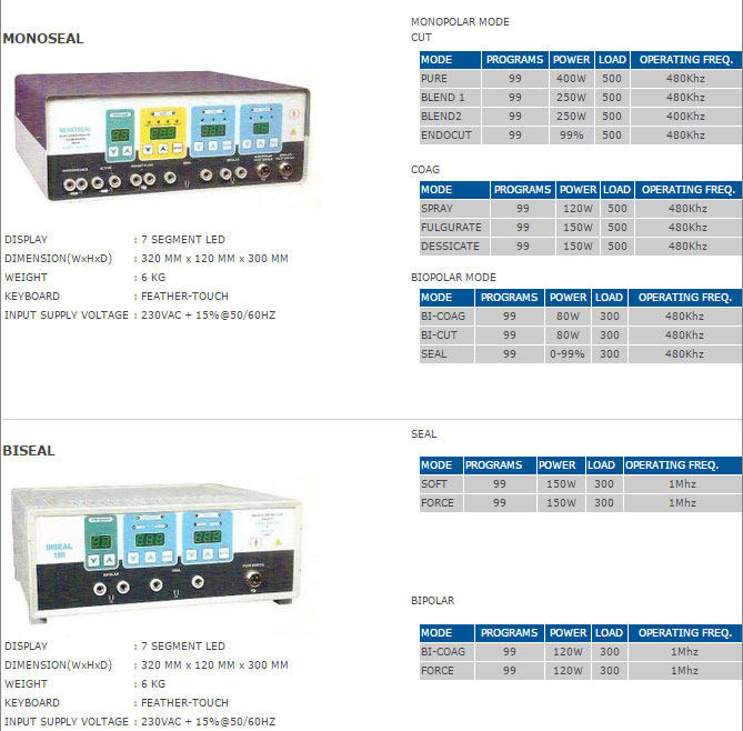 MONOSEAL is the most versatile Electro Surgical Generator with added feature of vessel sealing systems. It offers features and performance never before available in a single generator. This is Technology which is different from conventional diathermy & provides a unique combination of pressure & energy to create vessel fusion & permanently fuses vessels up to & including 7mm in diameter & tissue bundles, without dissection or isolation. An optimized combination of pressure & energy creates the seal by melting the collagen & elastin in the vessel wall & reforming it in to a permanent, plastic like seal & result in virtually no sticking or charring. Feedback controlled response system automatically discontinues energy delivery wean the seal cycle is complete.